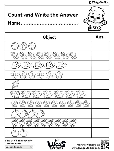 Count And Write Worksheet. Touch and count the number of objects in each group and write the correct number in the given box. In these worksheets, the child has to count the number of objects and write the count in the box provided.