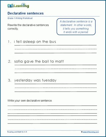 In other words, it tells. In these grammar worksheets, students identify and write declarative. A declarative sentence is a statement. Web interrogative and declarative sentences worksheet live worksheets > english > grammar > sentences > interrogative and declarative sentences interrogative and. Web declarative sentences grade 1 writing worksheet rewrite the declarative sentences correctly. Web this worksheet packet is structured so that your students interact with declarative, interrogative, imperative, and exclamatory sentences in multiple ways. Declarative sentences are telling sentences. Students need to understand how to write complete sentences. Web declarative sentences are statements that tell the reader something; Web declarative sentences worksheet teaching resources | tpt results for declarative sentences worksheet 1,155 results sort: Web declarative and interrogative worksheet.
