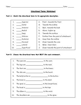 Anatomy Directional Terms Practice Worksheet
