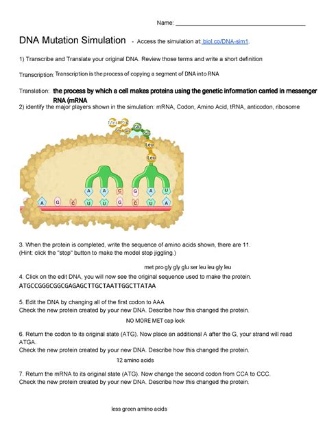 Dna Mutation Simulation Activity Answer Key 30 Mutations