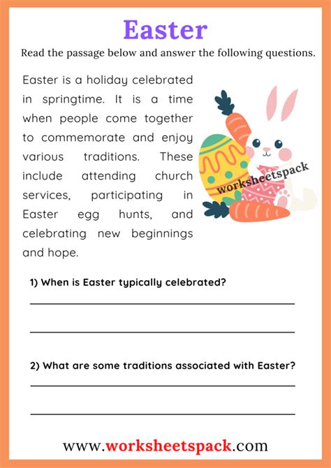 Web includes easter reading comprehension passage, worksheets, and math activities!. Web 427 easter english esl worksheets pdf & doc sort by most popular time period. Ad nurture your child's curiosity in math, english, science, and social studies. Web easterreading comprehension about easter. Web 19 comments easter print the worksheet about easter and complete the exercises to. Web easter reading comprehension worksheet. The reading comprehension worksheets include two. Web this reading comprehension worksheet is about easter. Paintings, pictures and photographs age. Easter rabbit an old german legend by.