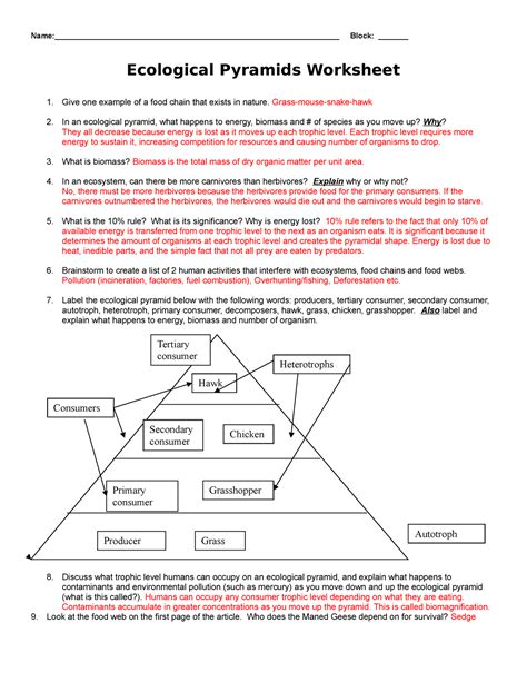 Ecological Pyramids Worksheet Answer Key Ivuyteq