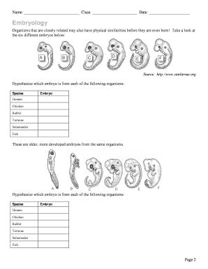 Label the following missing parts of the egg: Embryology is the biology branch that focuses on the prenatal development of gametes, fertilization, and embryos and. Students must employ lower, mid and higher order thinking. Web proof of evolution embryology worksheet solutions. Embryos grow and develop in a series of stages. Web key points embryos are unborn or unhatched organisms early in the course of development. These worksheets have been designed as short teaching exercises that can be downloaded and printed (pdf version) or modified by the teacher. Web at this station, students will answer questions about key terms and ideas relating to comparative embryology. Web teach comparative embryology with this ease to use and check worksheet. Human embryo development stages answer key. Put a ruler or use piece of paper to.