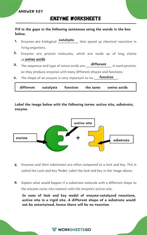 Enzymes Worksheet Answer Key. A catal yst is a substance that increases the. * the role of enzymes ina human [1] « the effect of this high body temperature on enzyme activity.