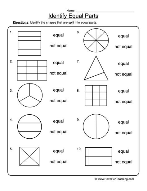 Beginning Fractions Equal Parts Worksheet for Kindergarten 2nd Grade
