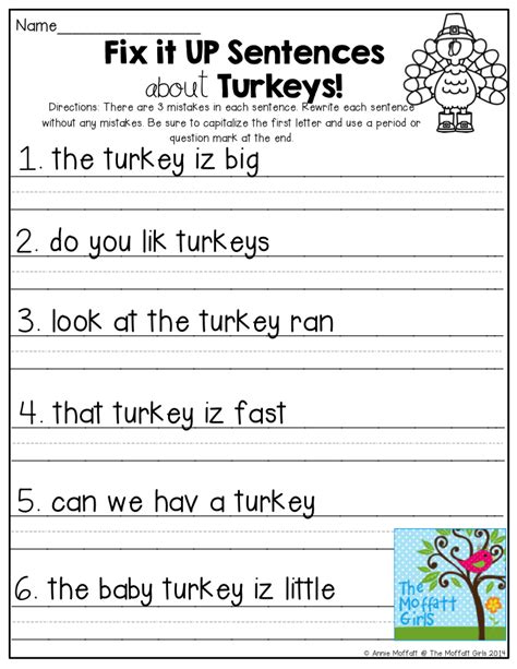 Fix it UP Sentences about Turkeys! There are 3 mistakes in each