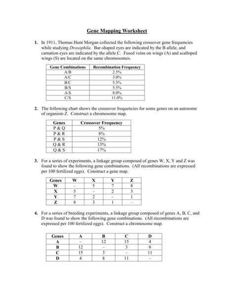 Gene Mapping Worksheet Answer Key —