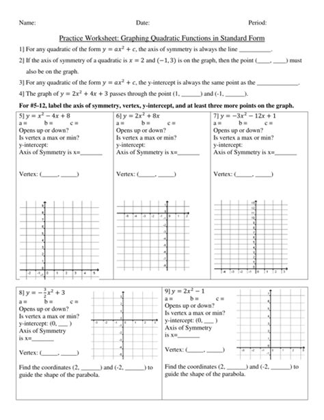 Graphing Quadratic Equations Worksheet Answer Key. Uploaded in word and pdf formats for easy printing or editing.also has a practice worksheet (and key) to let students p. Vertex minimum name ____________ parabola maximum axis of symmetry zeros/roots x.