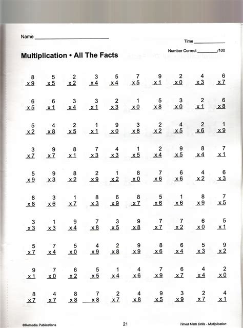 4th Grade Multiplication Worksheets 100 Problems Times Tables Worksheets