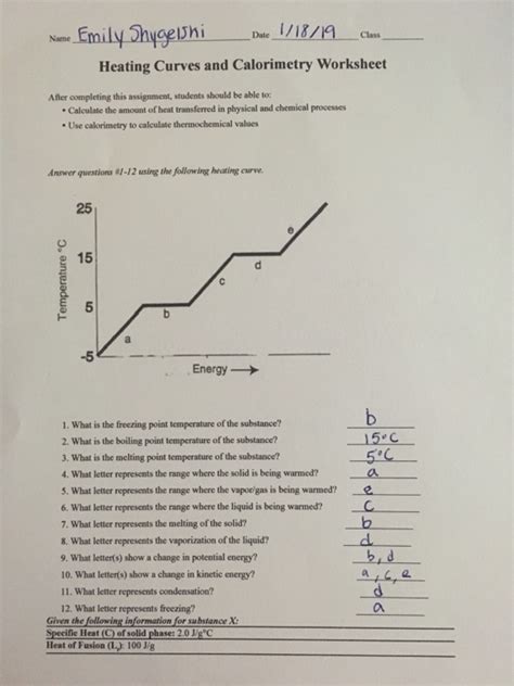 For the following heating curve you are to use the words in the word bank to fill in the boxes on the heating curve. _____ what is the melting point temperature of the substance? _____ what is the boiling temperature of the above substance? It covers kinetic and potential energies through an examination of temperature. Web this worksheet assesses students' knowledge of phase changes by examining a simple heating curve. All areas in which the particles are not changing their speed. It represents the heating of substance x at a constant rate of heat transfer. The following graph represents the heating curve of a particular substance. A complete answer key is provided at the end. Web answer the following using the above heating curve what is the melting temperature of the above substance? Web answer key heating curves and phase changes task: