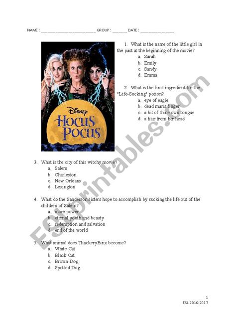There’s a new lego disney castle, released in celebration of the company’s 100th anniversary. Web a comprehension worksheet for a narrative from the year 3 magazine (issue 3). Web by robert mann published: Halloween movie guide bundle | hocus pocus 1 & 2 |. Students will keep count of events that happen multiple times throughout the movie, identify objects. Let´s talk about movies level: Web hocus pocus (movie) worksheet movies worksheets: Six characters and a magical cat! Web welcome to esl printables, the website where english language teachers exchange resources: Released in 1993, hocus pocus.