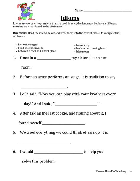 Idiom Worksheet 5Th Grade. Bring learning to life with worksheets, games, lesson plans, and more from education.com.