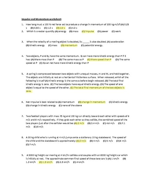 Momentum And Impulse Worksheet Answers Cstephenmurray WERT SHEET