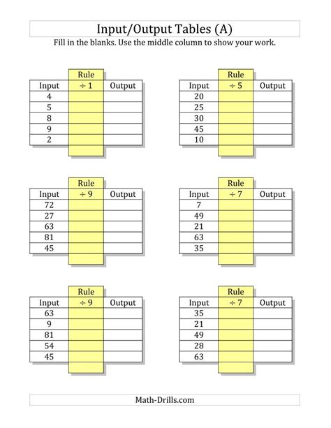 Input output 3 11 2 10 6 8 3. Web input/output tables (a) fill in the blanks. Input output 7 13 3 9 9 4 2. Students will find the rule for input / output. What is the rule for this table? Challenge your math whiz to review his basic math operations by discovering the secret function that changes the input to the output. Students will complete the table and give the rule. Students are given input and output numbers and determine the multiplication or division rule being used to produce the answer (e.g. Worksheet for third grade math. Students are given input and output numbers and write the rule being used to produce the answer (e.g.