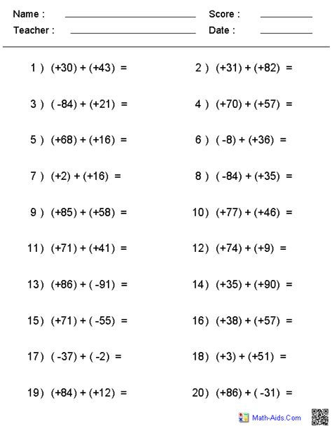 Addition Of Integers With Answers Worksheets Worksheet Hero