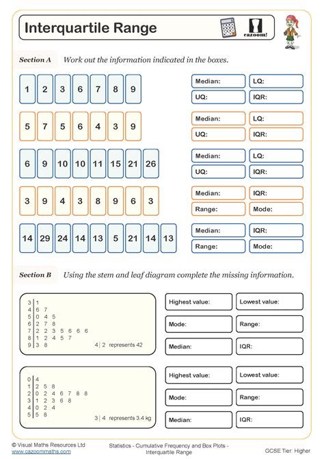 Web some of the worksheets for this concept are story based interquartile ranges work 1, name date interquartile range practice work 1 median, math virtual learning grade 7. Web an interactive maths worksheet to practice finding the interquartile range. Something went wrong, please try again later. How do the iqrs describe the data set in each group ? The interquartile range (iqr) is the difference between the third quartile and the first quartile in a given data set. Since it is not calculated using any outliers because it is the range of the middle half of the data, it is sensible to. N5 maths essential skills 5. Range & interquartile range by. Click on the image to view or download the pdf version. Web (i) find the interquartile (iqr) for each set of data.