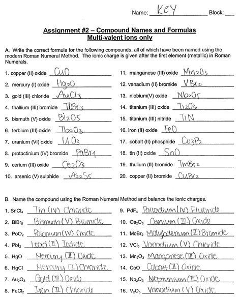 Simple Binary Ionic Compounds Worksheet Answer Key worksheet