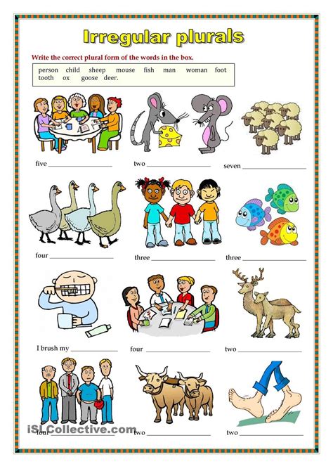 Irregular Plurals Worksheet. English as a second language (esl) grade/level: Irregular nouns are those nouns for which the plural form is not created by adding 's' or 'es'.
