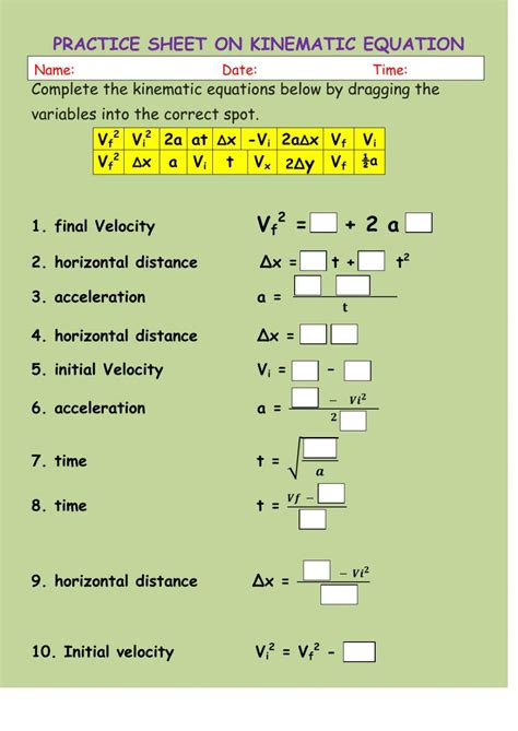 Practice Sheet on Kinematic Equations worksheet