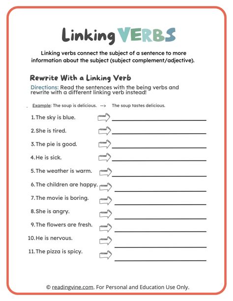 Linking Verbs Worksheets. Some common linking verbs are is, was, be, seem, feel and look. This function sets them apart from intransitive verbs, phrasal verbs, and impersonal verbs.