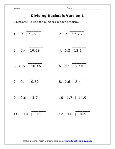 6 Dividing Decimals 5th Grade Math Worksheets Division worksheets