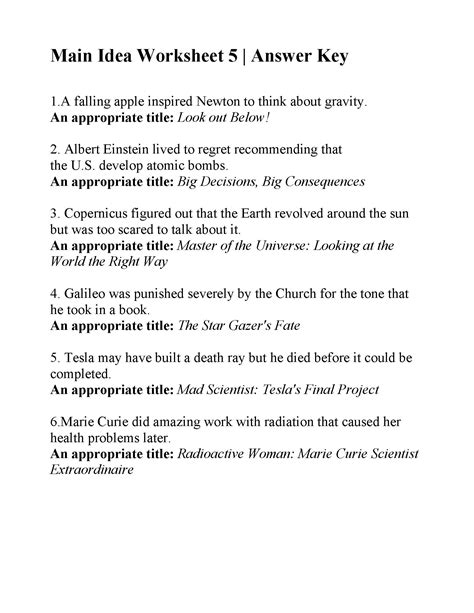 Printable Main Idea Worksheets Multiple Choice With Answer Key