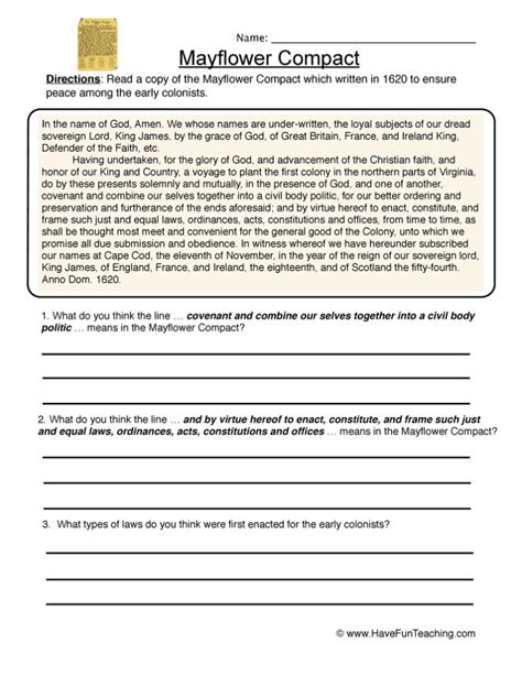 Mayflower Compact Worksheet Pdf. This can be used as homework or for substitute plans as it’s a completely stand alone assignment. John carver john howland william brewster edward winslow george soule