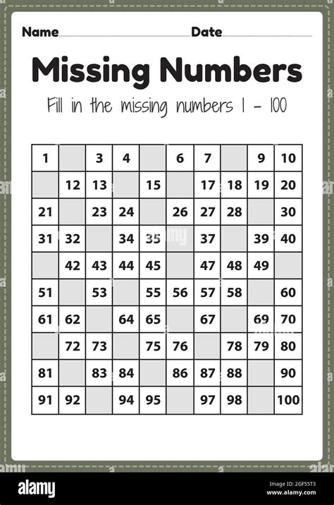 Write Each Missing Number 1 100 Printable Worksheet for Kids About To