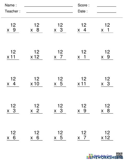 Worksheet #1 is a table of all. Web multiply by 11 and 12. Live worksheets > english > math > multiplication. Web multiplying by 12 math drills worksheet ×10 12 × 12 8 2 ×12 4 3×12 ×12 12 7×11 ×12 9 ×. Web multiply by 12 worksheet. Web multiply by 12 worksheets are just what your child needs to practice their multiplication. Live worksheets > english > math > multiplication >. Web multiplication facts multiply by 10,11 or 12 multiply by 10,11 or 12 10, 11 & 12 times. Web multiply by 12 interactive and downloadable worksheets. Web multiplication by 12 worksheets builds a strong calculation skill in kids.