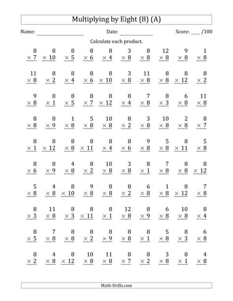 Multiply By 8 Worksheet. Students multiply 8 times numbers between 1 and 12. Web know more about multiply by 8: