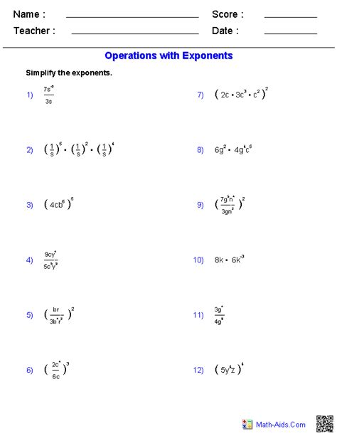 30 Operations with Exponents Worksheet Education Template