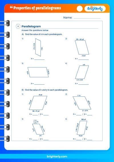 Web the area of parallelograms worksheets feature a variety of practice pdfs on finding the area of a parallelogram and the missing measures with attributes in integers, decimals. B) sheet 1 find the measure of the indicated. B) state whether each quadrilateral is a parallelogram. A square is a parallelogram with sides equal in. These math worksheets should be practiced regularly and are free to download in pdf formats. A) state whether each quadrilateral is a parallelogram. Web download parallelogram worksheet pdfs. Web a parallelogram is a quadrilateral with both pairs of opposite sides parallel. Web sample points a(1, −1) b(0, 2) c(4, 4) d(5, 1) segments ab = 3.16 bc = 4.47 cd = 3.16 da =4.47 construct any quadrilateral abcd whose opposite sides are congruent. Web parallelogram rectangle rhombus square worksheet.