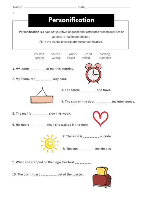 Personification Worksheet Pdf. Web identification worksheet by identifying the personification and what it is personifying. The house stared at me with looming eyes.