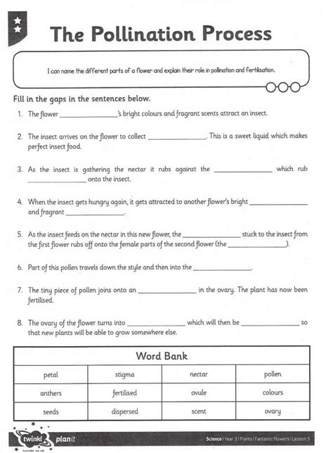 Pollination worksheet for 3º