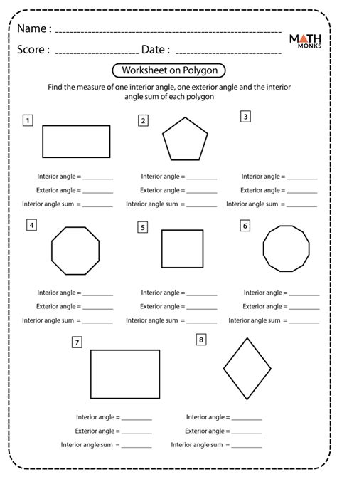 Web free printable worksheets with answer keys on polygons (interior angles, exterior angles etc.) each sheet includes visual aides, model problems and many practice problems. Web polygons worksheet will help the students in understanding the geometry basics. Try our free pdf angles in polygons worksheets to help children solve a variety of tasks, such as finding a missing angle in a polygon, finding the measures of two or more indicated angles in polygons, finding the sum of interior angles of a polygon, and more. Web geometry worksheets and online activities. Web learn for free about math, art, computer programming, economics, physics, chemistry, biology, medicine, finance, history, and more. We also focus on the definition and classification of lines and angles. In geometry, a polygon is a closed figure formed by the line segments. Students will identify types of polygons, calculate sides and angles (both interior and. Web our grade 3 geometry worksheets review two dimensional shapes, particularly circles, triangles, quadrilaterals and polygons. Web these worksheets explain how to identify polygons based on their characteristics. Web free printable worksheets with answer keys on polygons (interior angles, exterior angles etc.) each sheet includes visual aides, model problems and many practice problems.