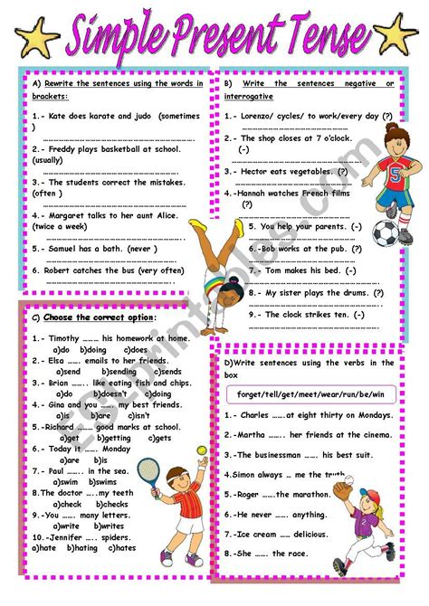 Present Simple Worksheets. With that kind of variety, you’re sure to find some worksheets that’ll fit your class’s personality. Beginner the present tense is the base form of the verb: