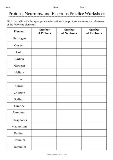 Protons Neutrons And Electrons Practice Worksheet Answer Key