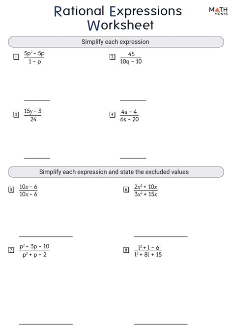 Web reduce the following rational to its lowest form. Web these worksheets provide a variety of problems and exercises designed to challenge. Web free printable rational expressions equations and functions worksheets. Web adding/subtracting rational expressions date_____ period____ simplify each. Web the process of adding and subtracting rational expressions is similar. Web students will practice adding rational expressions and subtracting rational. Web solving rational equations solve the following equations using the lcd to clear fractions. Discover learning games, guided lessons, and other interactive activities for children. Web rational expressions worksheets help kids in knowing how to solve rational. Web rational expression worksheet #8: