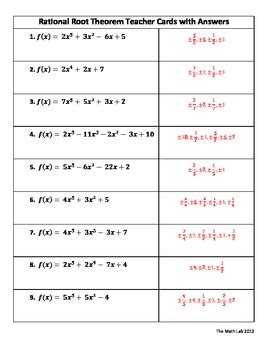 Rational Root Theorem Worksheet. Web the rational root theorem, or zero root theorem, is a technique allowing us to state all of the possible rational roots, or zeros, of a polynomial function. Remember that a rational number is a number that can be written as a quotient of two integers, that is, as a simple fraction.