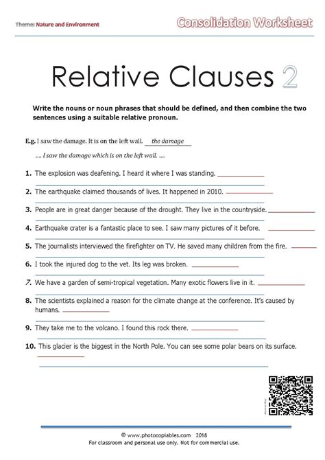 They start with a relative pronoun, for example: This worksheet is designed to test your children's knowledge surrounding relative clauses. (3) complete the following sentences using relative clauses. Web this worksheet provides three exercises to practice relative clauses: Web relative clauses give extra information about a noun. Who • which • whose this is the. Who, which, where, when, whose, that. Web two worksheets on relative clauses that get children to think more deeply about relative pronouns and clauses rather than just identifying them or creating. Web docx, 19.89 kb. Starts by giving a description of what the.
