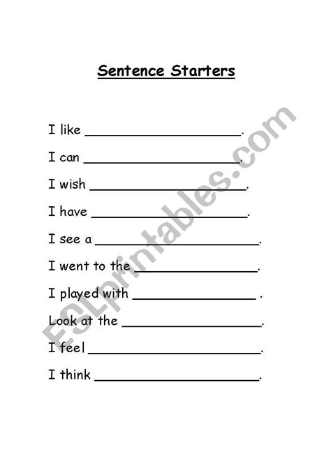 Sentence Starters Worksheet. Click on the image to view or download the pdf version. Worksheet #1 worksheet #2 worksheet #3 worksheet #4 worksheet #5 worksheet #6 similar: