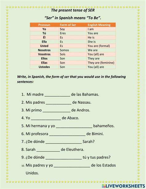Ser To Be Worksheet. Web about this quiz & worksheet. Web ser to be interactive and downloadable worksheets.