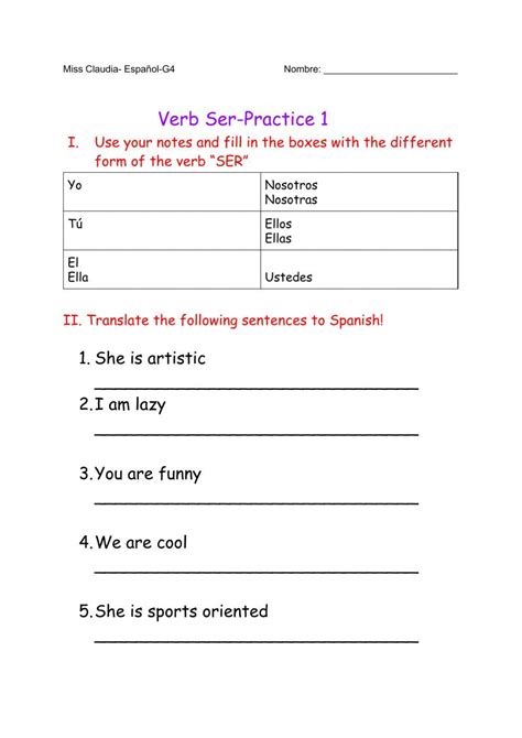 Web spanish ser, estar, & adjectives worksheets. Side 1 has 20 problems in which students choose the correct form of ser from two options and. Students read spanish sentences and write in the correct form of ser or estar. Give students a copy of the worksheet. Students could work individually or in pairs to solve the exercises on this worksheet. Web worksheet that covers basic use of ser in the present tense and subject pronouns. Web about this quiz & worksheet. Web this worksheet was designed as a learning guide when presenting the verb ser with spanish 1 classes, or reviewing in spanish 2 classes. There are many things in life that can make. Web download as a pdf ser o estar, esa es la cuestión guide on how to use the spanish verbs ser and estar effectively 101. Using the spanish verb ser is the focus of this quiz and worksheet combination.