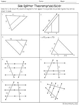 Web regents exam questions g.srt.b.5: What is the side splitter. If cl=3.5, le=7.5, and ea=9.5, what is the length of ar, to the nearest tenth? Examples, solutions, videos, worksheets, and activities to help geometry students learn about the side splitter theorem. Web this set of worksheets includes notes and practice on solving for missing sides in similar polygons, side splitter theorem, midsegments of triangles, and the mean proportional in. 5.5 4.4 3.0 2.8 2 in. Side splitter theorem page 1 www.jmap.org name:_____ 1. Side splitter theorem 2a name: Web no prep notes furthermore practice with side splitter theorem! Find the length of ab.