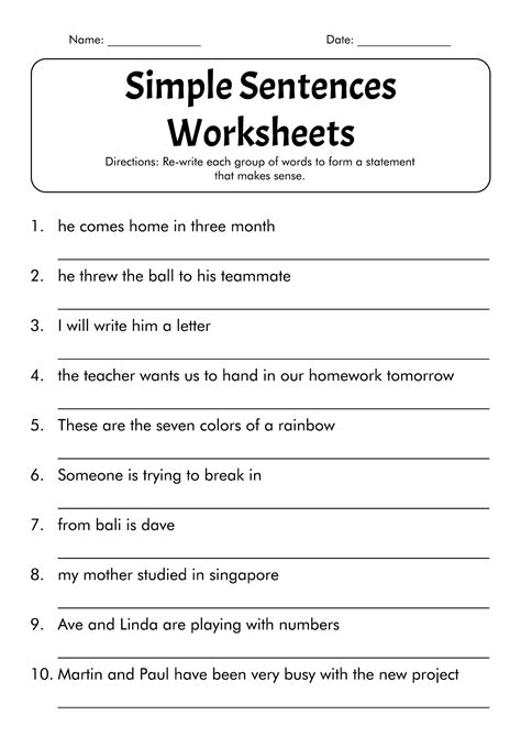 Sentences Worksheets Simple Sentences Worksheets