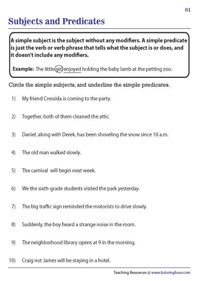 Simple subjects and predicates worksheet answers answers to the simple subjects and predicates worksheet. Web all complete sentences have a subject (what or whom the sentences is about) and a predicate (what the subject is or does). Most birds | can fly. Then use each group of words in a sentence. Web simple subjects & predicates. Web simple subject and predicates worksheets. Worksheet #1 worksheet #2 worksheet #3. These worksheets provide practice in identifying simple subjects and predicates. Draw a line between the subject and the predicate. These worksheets have problems that give the students practice in recognizing complete sentences, identifying which part is missing in a sentence. Web simple subjects and predicates worksheet explanation, examples, and practice using simple subjects and predicates.