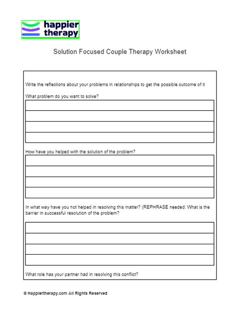 Solution Focused Couples Therapy Worksheets. Web free couples therapy worksheets for therapists to download. Learn more about and download our couples worksheets.