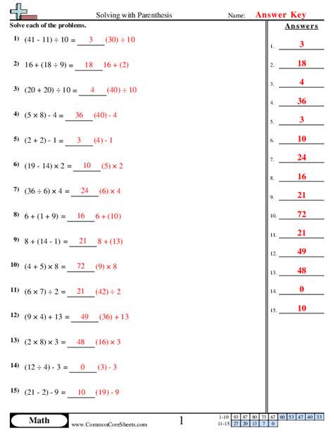 Solving With Parentheses Worksheets Worksheets Key