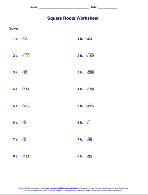Square Roots worksheet