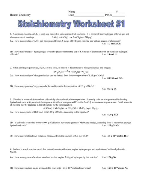 Unit 08 Stoichiometry Worksheet 1 With Answer Key Download